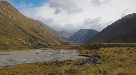 I concentrated on where my feet were going on the old sheep trail through the tussock, rather than looking up at the house-sized rocks that perched precariously 400 m up the Mount Hutt foothills.